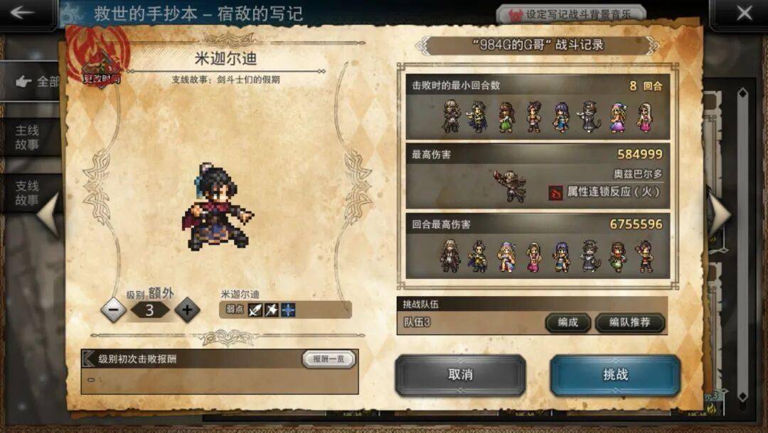 龙尾扇实装第一天时直接把G哥打红温,即便是最简单的斗技大赛难度都很难处理,奥爹属攻队打了很多个回合才勉强拿到本体。随后在面对宿敌Ex3时更是被暴打,一怒之下拉满了全部Buff才勉强打出5T过关,直到上周G哥才发现自己那奥爹的武器特别拉,相当耽误事。