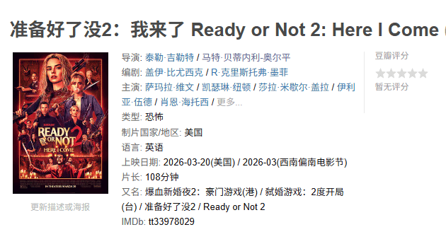 《准备好了没2:我来了》延续了第一部的成功,继续由血衣新娘萨玛拉·维文上演从被围猎到复仇的反杀。整个故事依然在延续从逃亡到反击的设定,不过这次设定更大了,补齐了上一部留下的一些坑,让世界观也更完整了。