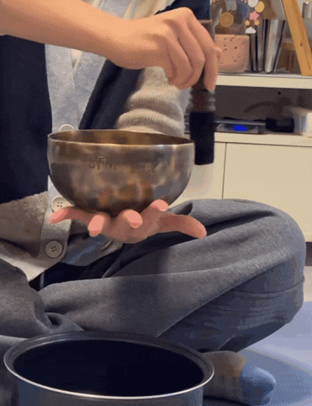 还有一群求睡人群,每到晚上就打开手机里某个声音博主。博主用一根棍子来回敲击一个碗状金属容器,这就是颂钵。