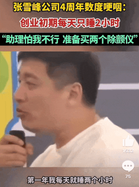 在公司4周年年会上他数度哽咽:创业初期每天只睡2小时,“助理怕我不行 ,准备买两个除颤仪”。
