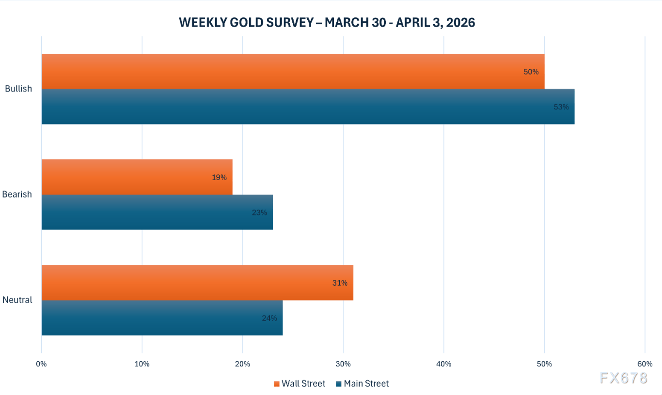 Kitco每周黄金调查显示,华尔街人士情绪转向均衡,半数预计未来一周金价上涨,主街投资者也回归温和看涨偏见。但分析师观点存在分歧:部分人认为战争不确定性使走势难以判断,技术因素与地缘事件交织;另一些则指出,股市下跌与美元上涨构成“有毒环境”,黄金避险地位短期可能受限,只有央行明确放松信号才能转为明确看涨。