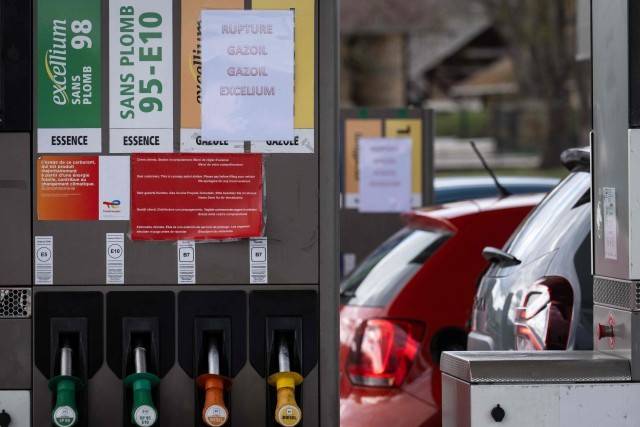 4月1日,法国鲁法克,一家加油站的油泵上贴着汽油售罄的标识。2月28日美国和以色列对伊朗发动战争后,全球能源和股票市场受到冲击,导致油价飙升。视觉中国供图